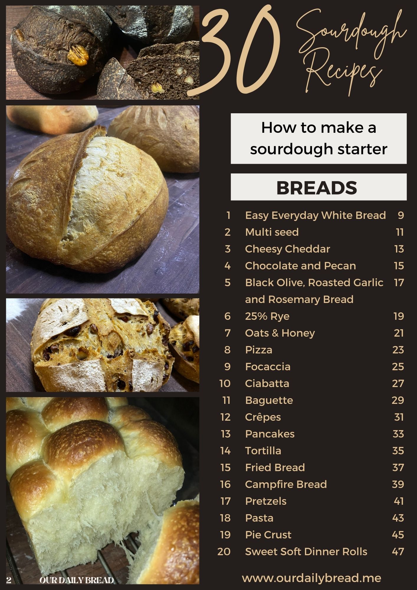 Have healthy, tried and true sourdough recipes at your finger tips. Never wonder again what Sourdough Recipe to try next with this handy 30 Versatile Sourdough Recipes only a click away!
